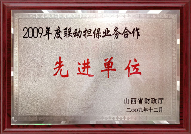 2009年,山西省財政廳度聯(lián)動擔保業(yè)務合作先進單位