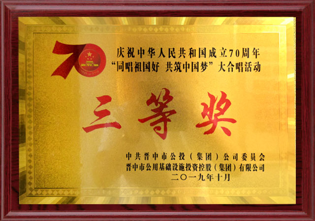 2019年,慶祝建國70周年大合唱三等獎